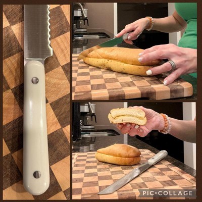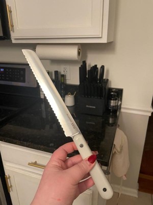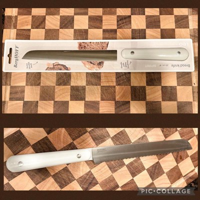 [This review was collected as part of a promotion.] This bread knife is excellent! It has a stainless steel blade which is extremely sharp and extremely effective at not only cutting bread but fruits, vegetables and even pastries. It feels very comfortable in the hand even though it’s on the longer side. It cuts crusty bread without squishing the inside which is obviously not desirable. It has a nice, precise slice without anything spilling out especially with certain fruits. The blade is resistant to corrosion which keeps it looking newer longer. This is hand wash only with mild soap. I had never heard of this brand so I’m very happy Influenster introduced me to it. I’m very satisfied with my new bread knife!