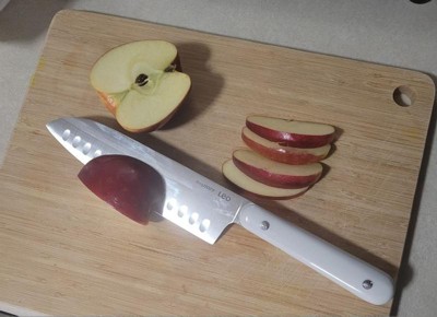 [This review was collected as part of a promotion.] This knife is very good for everyday use. It has a cute white handle that not only is stylish but it is also easy to clean and easy to hold. The way is designed ensures a comfortable grip so I can cut fast without worrying about the knife sliding from my hand. It is lightweight and I have to admit that I have put it in the dishwasher with no issue. The price point is reasonable so I would consider this knife a safe pick.