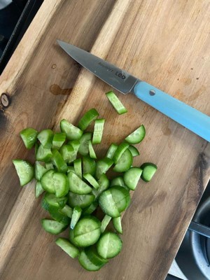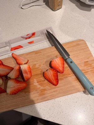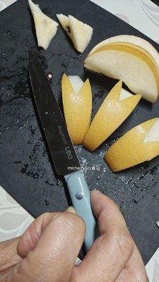 [This review was collected as part of a promotion.] This knife is cute, but it wasn’t very sharp upon delivery. I wanted to love it, but the handle shape is not very comfortable or ergonomic either, making it unpleasant to use based on sharpness and the handle feel. I like the style but care more about efficacy than looks, so this isn’t my first choice for slicing.