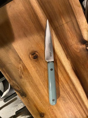 [This review was collected as part of a promotion.] I absolutely love this BergHOFF Leo Slate Stainless Steel Utility 5" Knife for once I don't dread chopping food up and that's all thanks to this knife 🔪 It makes meal prep so easy! The blue handle fits comfortably in my small hands. The blade is super sharp, I don't have to use any force when chopping things up this knife glides through everything. I use it everyday to chop up apples, potatoes, chicken and so on. It washes well without any staining occurring on the stainless steel blade and even after daily use the sharpness hasn't dulled. It's extremely durable, I've accidentally dropped it numerous times and it's still in perfect condition. This is my favorite little knife, I want the entire BERGHOFF knife collection now. If you're an avid cook, you need this in your kitchen!