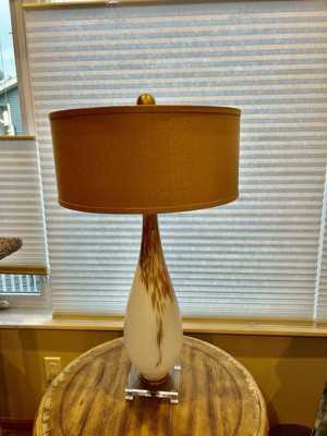 It is a beautiful lamp. Note- the shade is much darker than the advertised picture suggests. In the advertisement it shows a beige shade and in reality it is more a darker brown, but it goes well with the glittery gold area at the neck of the lamp.