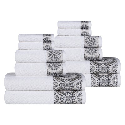 Chevron Zero Twist Cotton Solid and Jacquard 12 Piece Bathroom Towel Set, Black - Blue Nile Mills