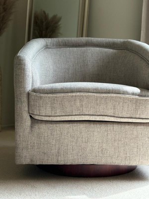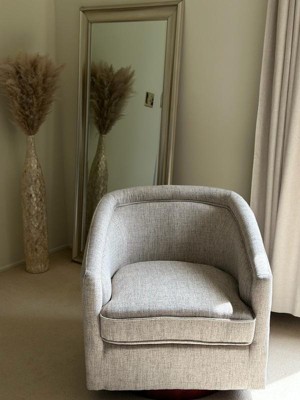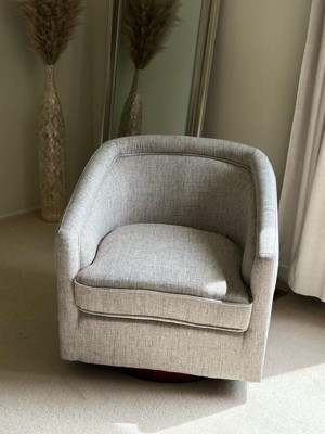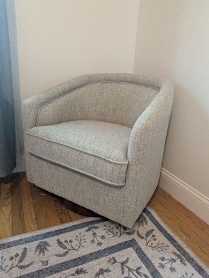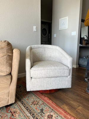 [This review was collected as part of a promotion.] I just got this swivel accent chair and I’m already obsessed! The clean, modern design adds a chic touch to my space, and the neutral gray upholstery blends beautifully with the rest of my decor. It’s surprisingly sturdy yet super comfy — perfect for reading or relaxing. The texture of the fabric feels high quality, and the compact size makes it ideal even for smaller rooms. Bonus points for how easy it was to assemble! Stylish, compact, and comfortable — this gray swivel chair blends modern design with cozy functionality. It came fully assembled and is instantly ready to enjoy. Pet-approved! Also, my cat has claimed it as her new throne — so that’s definitely a sign of approval!