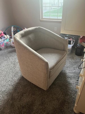 [This review was collected as part of a promotion.] This chair has a sleek design and feels sturdy. I love the neutral color and that it swivels. We will be using it in the nursery so I wish it had a little more cushion but otherwise it’s perfect!