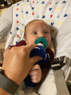 [This review was collected as part of a promotion.] This is the only pacifier my son will take which is perfect. However I'm not so crazy about the bear. It's cute at times but at other times it can totally get in the way but yet he loves it so I can't remove it.