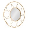 Elevate your home decor with the Kate and Laurel Cori decorative mirror. This stunning 34-inch diameter display with 17 inches of the mirror surface's diameter features a natural-toned metal frame with beautiful rattan accenting, adding a touch of neutral charm to any room. The boho design of this mirror seamlessly blends modern and traditional elements, making it a versatile addition to any decor style. Crafted with high-quality materials, the Cori mirror is built to last. The metal frame is strong and durable, ensuring that this mirror will provide years of use and enjoyment. The rattan detailing is skillfully woven to create an eye-catching, coastal texture, adding depth and visual interest to your wall decor. This decorative mirror is perfect for creating a dramatic focal point in any room. Hang it in your entryway to greet guests with style, or add it to your living room to create a stunning accent wall. Its large size makes it an ideal choice for dressing up your bedroom or creating a statement piece in your entryway. The Cori mirror is easy to install, thanks to the pre-installed keyhole hanger. Simply hang it on your wall and enjoy the instant impact it has on your space. Whether you're looking to update your home decor or add a finishing touch to a new space, the Cori wall mirror is the perfect choice.