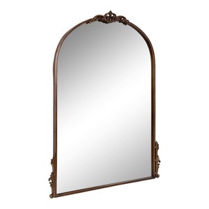 Bring the timeless beauty of french provincial design into your home with the lovely Myrcelle wall mirror. This beautiful accent piece features a sophisticated arched shape with ornate garland details along the edges and crown of the frame. Its antique bronze finish captures the vintage look it strives for, providing a warm and storied visual that draws the eye and captures the imagination. The Myrcelle mirror is a striking statement with its substantial size, measuring 24.5 inches wide by 1.5 inches deep by 32.5 inches tall. This large mirror is perfect for styling on your mantle, over an entryway console, or above your vanity as a bathroom mirror. Adding this lovely piece of wall decor not only showcases your unique style but enhances the vibrancy and depth of your space with its large surface area. Whether you're getting ready for the day or seeking a home decor piece that mirrors your personality, the Myrcelle makes an excellent show-stopping presence. Use the metal sawtooth hanger attached to the back for quick and easy installation in just a matter of minutes.