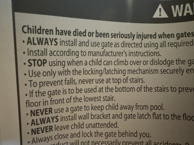 Broke less than 7 weeks after we installed. The gate is retractable and it is suppose to lock into place and it can be stretched and no longer locks. Also as you can see from my pictures, the information on the Target website and the instruction manual contradict each other. The website says it can be used at top of stairs and the instruction manual says not to use at top of stairs. I’ll have to take it down to return it. Also going to have big holes in wall due to using drywall anchors to install it. Don’t waste your money!