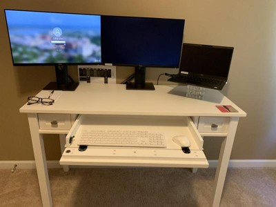 Really great desk! I love the size and height! The first desk I ordered did come with a crack in the main drawer that went all the way through, but the second one came in great condition. I do wish the the main drawer was a little smoother to push in and pull out but overall really enjoy it!
