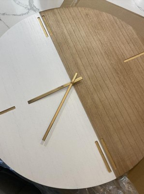 CosmoLiving by Cosmopolitan 24"x24" Wooden Round Wall Clock with Marble Side White: Silent Mechanism, Modern Minimalist Design