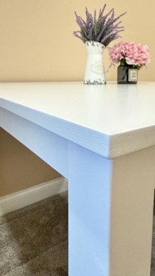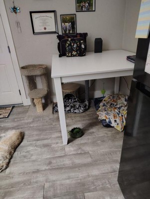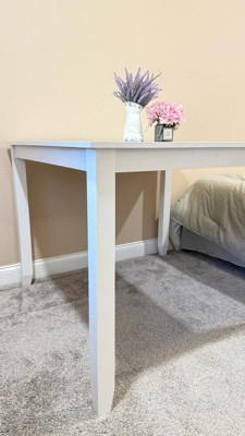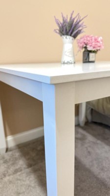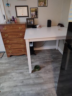 [This review was collected as part of a promotion.] This table is huge!!! I was not expecting it to be this big!! The table is easy to assemble. Easy to move around the house to find the perfect spot for it. The table itself is a nice heavy wood, that is very sturdy for all the things you do on a kitchen table. Cleaning is easy peasy. A wet cloth takes off the dust and animal hairs ( if you have animals) If you are a single person like myself, once you have the table legs on the table it can be challenging to flip the table over once put together. It is a heavier table. Very nicely made. So my advice would be to make sure you have someone to help you flip her over. If you try by yourself, there is the possibility to snap one of the legs off. I will definitely use this table for my junk journaling and to do my work from home. I absolutely love this table.