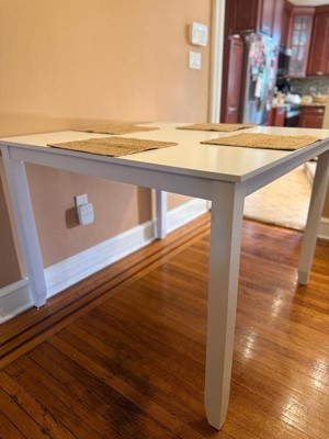 [This review was collected as part of a promotion.] I really love the overall look of this Sleek Counter Height Dining Table. The white finish is gorgeous and clean. It gives a modern, simple vibe that’s easy to match with different chairs and decor. Assembly was very easy. You only need to attach the four legs to the tabletop, and that’s it. There were no complicated steps at all. The table itself is heavy, so I definitely recommend having two people lift and position it. Once assembled, it feels very sturdy and solid. The only small thing I would suggest improving is the packaging underneath the table. The tools and legs were stapled to the bottom of the tabletop, and I didn’t have the proper tools to remove the staples easily. Regular staple remover I have at home doesn’t work. It’s not a big issue as it’s under the table and doesn’t affect the function at all, but it would be nice if it were packaged differently. Overall, I’m very happy with this table and would definitely recommend it.