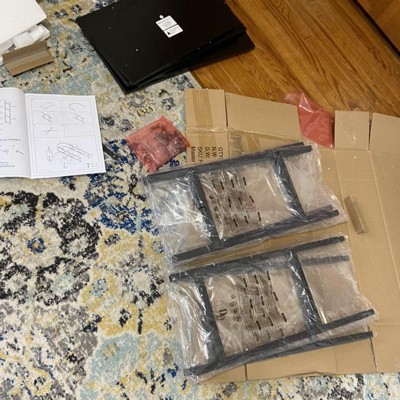 Easy to put together, took about an hour. Looks great! I took off one star since the top part is slightly dented upon arrival, but not enough for me to return. Looks good in my space.