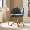 Add a touch of contemporary elegance to your space with a design that is equally functional and stylish. This modern swivel office chair is a wonderful addition to any office or home office with its variety vibrant colors-velvet fabric upholstery that blends with any design taste. Designed in a chic style with flower shape back, tufting and piped edges lend a tailored touch, while foam fill offers comfort and support. Sturdy and durable golden finish metal base and 360-degree wheels allow you to glide to anywhere in the room, height-adjustable to tailor your professional space. The cute computer chair is ideal for any casual or professional working area. It provides comfortable support with a cozy and convenient design. Item size: 23Wx24.5Dx32H Seat size:21Wx18.5Dx19.5H