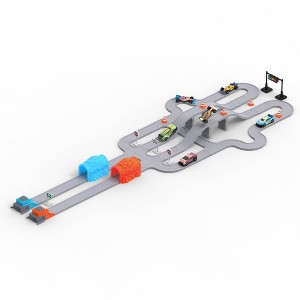 [This review was collected as part of a promotion.] This race set is pretty simple, yet fun. It can be connected to other tracks offered by the same brand, all affordable. My son loves race cars, so he enjoys pressing the buttons and having the cars zoom off. We don't use the extra traffic cones and stop signs, so I almost wish they hadn't included them. Packaging comes across as cheap, so this is best as an add-on gift.