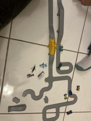 It took 1.5 hours to set up the track and then the pieces of road kept coming apart. Now that it is set up, there's no way it's coming apart because I definitely won't be putting it together again. I attached it to a big piece of cardboard, but now I have this awkward thing to store. The vehicles are tiny and of poor quality. The back of the dump truck fell off with seconds.