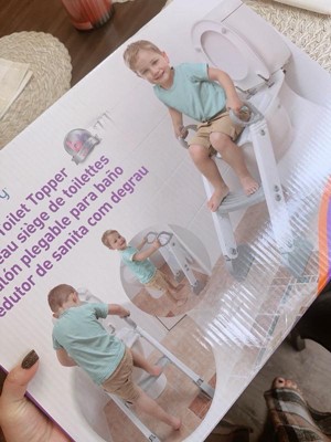 [This review was collected as part of a promotion.] I received this product for free from Influenster and Dream Baby for my honest review. I love this product. It makes potty training much more comfortable for my toddler. He nor I have to hold him up while using the bathroom, and the built in step allows him to get up and down from the toilet with ease on his own. I also love that when not in use, it just folds down and can be easily stored. Using this toilet topper has made my toddler really feel like he is a big boy.