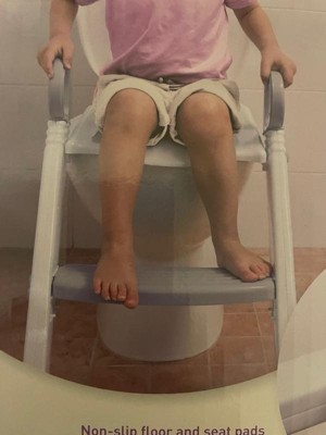 [This review was collected as part of a promotion.] This potty seat has been great for allowing my two year old independence while potty training. No more potty seats that need to be dumped and washed out. It has been so helpful. It was so simple to assemble as well. The only negatives I have to say about it is sometimes the feet slip on tile floor so you just need to be careful. It’s also larger than just a foldable potty seat that goes on top of the toilet but I don't mind because she can at least step up herself rather than needing me to lift her.