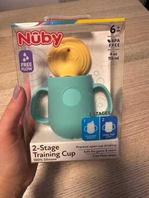 [This review was collected as part of a promotion.] The Nuby 2-Handle First Training Cup in Aqua is an excellent choice for helping babies transition to independent drinking. I got this cup for my daughter, and it has made the process so much easier. The dual handles are perfectly sized for little hands, allowing her to grip the cup comfortably and confidently. The soft silicone spout is gentle on her gums while also being designed to prevent leaks, which means fewer messes for me to clean up. Even when the cup is tipped over or dropped, it rarely spills. One of the standout features is how lightweight the cup is, making it manageable even for younger babies who are just learning. It’s also impressively durable, handling frequent drops without any noticeable damage. The only minor downside is that the lid can be a bit tricky to remove for cleaning, but this is a small issue compared to how convenient and functional the cup is overall. In short, the Nuby 2-Handle First Training Cup is a well-designed product that combines durability and practicality with a look that babies and parents will appreciate. My daughter loves using it, and I’m thrilled with how effective it has been in helping her transition from bottle to cup. I highly recommend it to other parents!