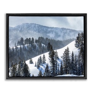 Stupell Industries Quiet Snowy Mountain Slopes Scattered Fir Trees Floating Frame Canvas Art, Black, 31" x 25"