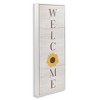Stupell Industries Vertical Welcome Sign Rustic Sunflower Grain Pattern Framed Giclee Art, White, 13" x 30"
