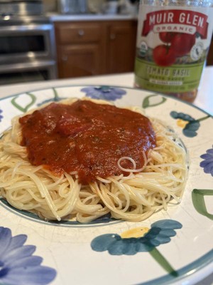 [This review was collected as part of a promotion.] We are a big pasta eating family, and we were extremely pleased with the taste and value of this Muir Glen organic tomato basil sauce. It tastes very fresh, and had the perfect amount of seasoning! We were very pleased! Heats up nicely for an easy dinner at home!