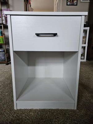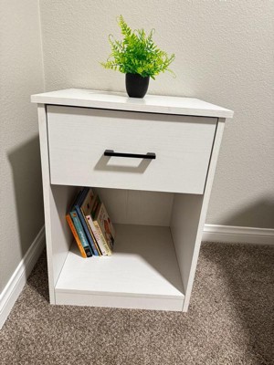 [This review was collected as part of a promotion.] This bedside table is gorgeous! I love the white oak look to it, and it spices up any area. It was super easy to assemble and didn’t take long at all. It has a super deep drawer that’s great for storage so the top does not look cluttered. It is also super easy to clean. It has a bottom cutout so you can even store larger items that you don’t mind being shown. I would 100% but this again or get a matching one!