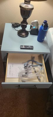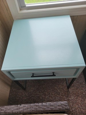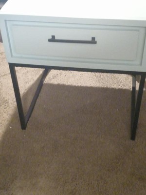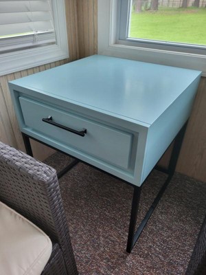 [This review was collected as part of a promotion.] I have had this table for almost a month now and I love it! I absolutely love the color, a pale blue, it matches my decor and I'm sure will match many others decor. It was super easy to assemble; just a few bolts in the legs and a couple of screws in the handle and it's done! It is so well made with high quality materials. I couldn't be happier with it. I love that it is a bigger size end table and the drawer is actually big enough to hold things. Most end tables that I've had are usually on the smaller size but this one is perfect. It is tall enough that it sits evenly with my chair arm and wide enough that I can put whatever I want on top and it not look weird. I coukd go on and on about this table but I really do recommend it. It is well worth the price for the quality and design.