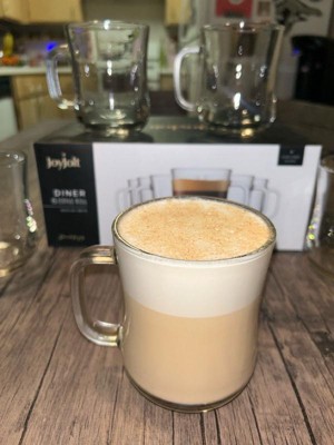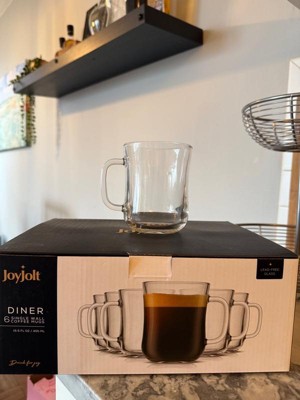 JoyJolt Diner Tea Coffee Mugs Glasses Set - 15.5 oz - Set of 6 Cafe Style Clear Coffee Mug