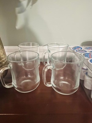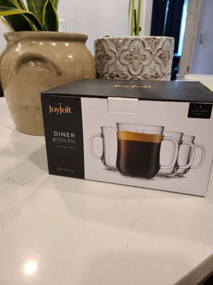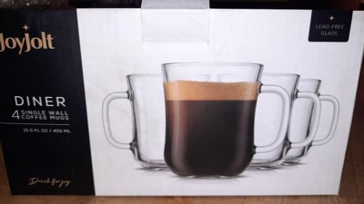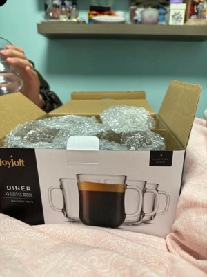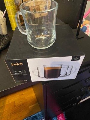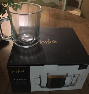 JoyJolt Diner Tea Coffee Mugs Glasses Set - 15.5 oz - Set of 4 Cafe Style Clear Coffee Mug