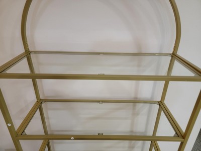 LEDREM 5-Tier Bookshelf, 32.7 x 72.2inch, Display Storage Shelf, Tempered Glass Shelving Unit with Metal Frame, for Bedroom, Living Room, Gold