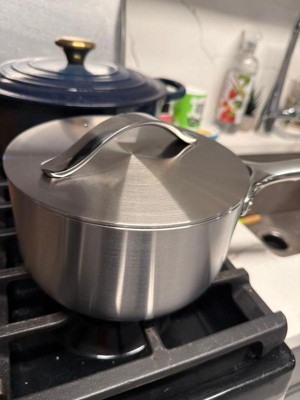 Caraway Home 3qt Stainless Steel Sauce Pan with Lid: Lifetime Warranty, Hand Wash, Gas & Electric Compatible