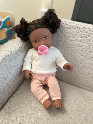 LullaBaby 14" Baby Doll with Curly Dark-Brown Hair & Brown Eyes