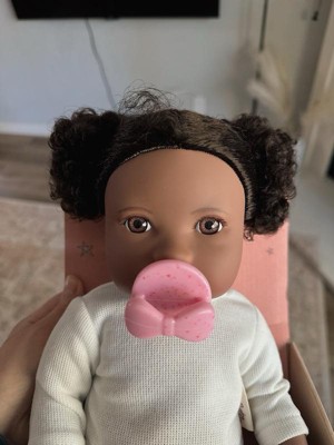 [This review was collected as part of a promotion.] This is a darling baby doll. It seems like she’s going to be really durable, as my daughters have drug her around everywhere and she still looks great. Her hair is full and the style is cute. The only negative is that the pacifier doesn’t really stay in and gets lost easily. Overall, a really quality gift.