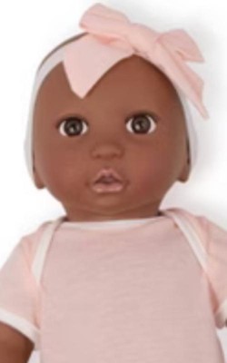 [This review was collected as part of a promotion.] This doll features a pillow-soft body, making it perfect for snuggling and comfortable enough for a child to sleep with. Its lightweight design allows children to play with and carry it easily. The doll has soft-bristled eyelashes and a limited range of motion in its extremities, with its head and limbs crafted from smooth, matte-finished plastic for a gentle touch. It comes with a Velcro-closing swaddle featuring a large pouch for easy placement, ensuring children can use it effortlessly. The attached headband, secured behind the doll's ears, is removable and equipped with a soft Velcro closure for added convenience. The doll’s onesie outfit is simple to remove for washing or outfit changes, and the plastic surface of the doll's body can be cleaned with a damp cloth. My child loves cuddling and nurturing this doll, which is durable for play and easy to maintain. Though the packaging is minimal, it comes boxed for convenient gift wrapping. This doll is well-crafted, versatile, and safe, with no small parts that pose choking hazards.
