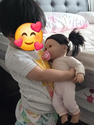 [This review was collected as part of a promotion.] You know what my 2-year-old said when she saw this baby doll? She goes, "Oh mommy, she's so cute!" And she's right, it's adorable. It's the perfect size for her, and it even came with a pacifier. The details and material on the doll are amazing. It's going to be a great addition to her collection of baby dolls and JJ.