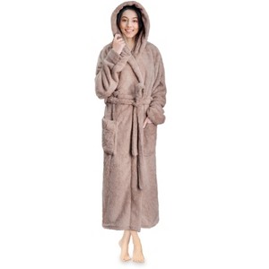 PAVILIA Women Hooded Plush Soft Robe, Fluffy Warm Fleece Faux Shearling Shaggy Bathrobe - 1 of 4