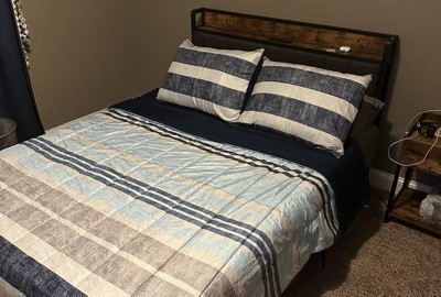 Very pleased with the quality of this bed for the price. It was easy to put together. Seems to be very sturdy and noise free when moving around on the bed. The headboard includes a usb and usb-c ports as well as two regular outlets. There are also four trundles for additional storage. My 13 year old son loves this bed.