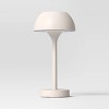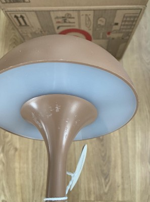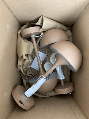 Bring a touch of luxury to your outdoors with this Solar and Rechargeable USB LED Outdoor Table Lamp from Threshold™. Made of metal, this solid-color outdoor table lamp features an integrated LED bulb that emanates a soft glow. With a sleek body and bowl-shaped top, this weather-resistant table lamp has a touch-activated sensor for easy on and off. Powered by solar energy, you can also recharge it with a USB cord if need.