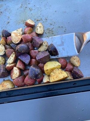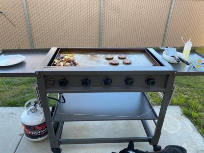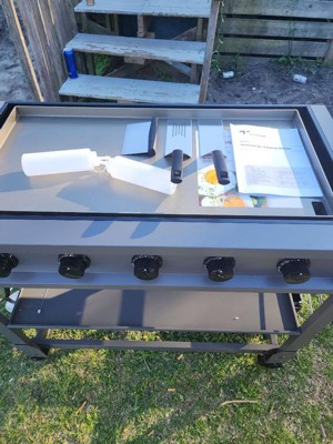 [This review was collected as part of a promotion.] I absolutely love this griddle. It was super easy to assemble, there’s a waste bin for east clean up with a paper towel rack! It was only about 188 pounds in the package but the wheels made it super easy to tow into my backyard patio. Cooks really fast! Which for a nurse and mom is a breath of fresh air. I was able to make chicken fried rice in less than 40 minutes. Came with squeeze bottles, griddles scraper, slotted/regular steel spatulas. I cooked potatoes to perfection and burgers came out tender. The seasoning sticks on your food not the griddle. I am beyond stoked with this griddle. Just make sure you are seasoning/oiling in between meals and cleaning is a must. It’s super easy to clean because it has a slot that goes straight to a collection cup under the burner. Can’t say enough good things! Thank you TYTUS!