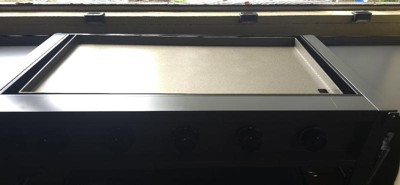 [This review was collected as part of a promotion.] TYTUS Grills 36 " is a awesome all in one barbecue . It has a 5 burner griddle. It has a large oil coated carbon steel plate for even cooking only problem is mine came defective . The plate is warped and moves when cooking shakes if flipping meat . That is the only downfall but a big one as it's costly to replace that piece alone . I love the grill the burgers tasted amazing but one the warped side took longer to cook . The grills so large can cook multiple dishes at one time . It came with all you need spatulas , scrapper and squeeze bottle for oil etc . Perfect grill except for the defect . Still highly recommended! Many good meals to be cooked :)