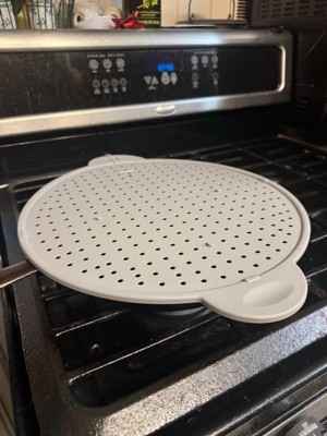 [This review was collected as part of a promotion.] This screen is GREAT for cooking chicken and reheating bubbly and thick squash soups with none of the splatter. The silicone material makes it easy to clean, which is an amazing bonus. The only downside is that the screen does get quite hot and can be difficult to safely remove. Overall, this piece is a helpful and welcome addition to our kitchen.