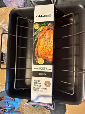 Calphalon Hard Anodized Nonstick Roaster with Rack: 16" Anodized Aluminum, Silicone Handles, Hand Wash, 10-Year Warranty