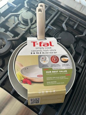T-Fal 8" and 10.5" Simply Cook Ceramic Fry Pan Red: Nonstick, Ergonomic Handle, Oven-Safe, Gas & Electric Compatible