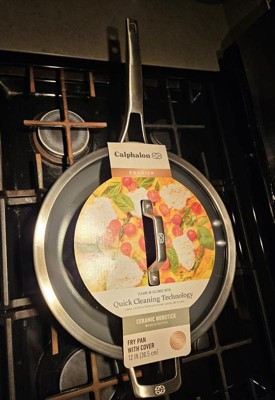 Calphalon 12" Premier Ceramic Frying Pan with Cover Midnight: Nonstick, Anodized Aluminum, Oven & Dishwasher Safe