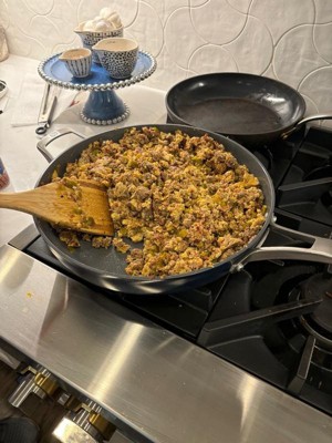 [This review was collected as part of a promotion.] I love this pan. It’s durable, great design, distributes heat quickly and well. It is mostly easy to clean unless you cook in the pan with no oil (e.g., ground meat) and so it kind of sticks but overall cleans better than other nonstick pans. Great addition to my pans!