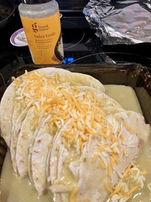 This Salsa Verde Enchilada Sauce from Good & Gather™ makes it easy to create a fresh, authentically flavored dish without a lot of work. Made with tomatillos, onion & Jalapeño peppers, this salsa verde enchilada sauce offers a mild heat level the whole family will enjoy. Spoon a filling mixture (such as cooked chicken, black beans or cheese) down the center of tortillas, roll them up and arrange in a baking dish, then pour the enchilada sauce over the top and bake to create a simply delicious dish.