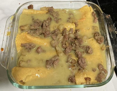 Living in S Texas, I had my reservations about trying this green salsa. (I received this product for free from the Hey, Bullseye™ sampling program in exchange for my honest review.) However, it was actually surprisingly good! As you can see in the photos, I used a square 8” pan. I had just enough salsa for my enchiladas. So if you plan on making a large quantity of enchiladas, you might consider a second bottle. The salsa is a little thin compared to regular salsa but it absorbs into the corn tortillas. The flavor of the tomatillos does come through. I really didn’t notice the jalapeños, which is good news for some. Overall, a good representation of good salsa verde