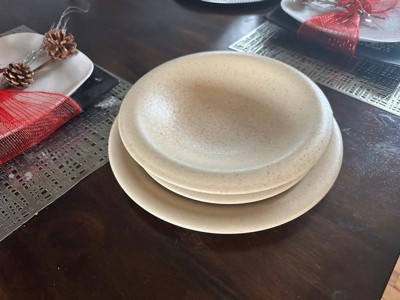 [This review was collected as part of a promotion.] This 12- piece set comes with 4 dinner plates, 4 appetizer plates, and 4 salad bowls. They have a nice weight and balance to them and feel very high quality. They are all decently sized but the bowls are very shallow, they almost have the same depth as the appetizer plates so that’s why I knocked off a star. The neutral cream color goes well with any decor and the texture of the dishes are smooth.