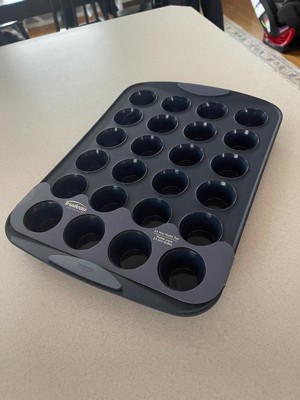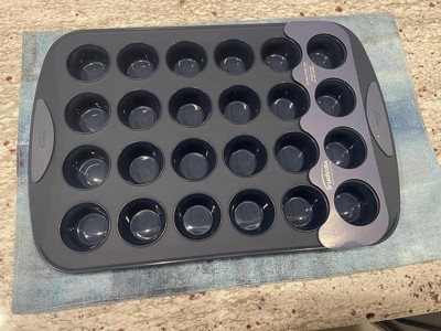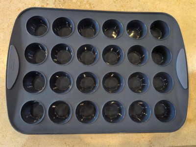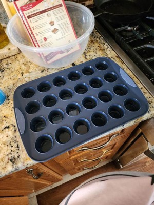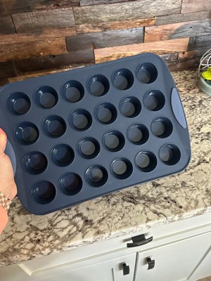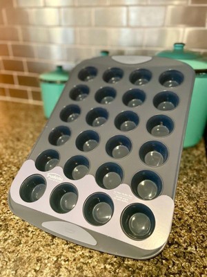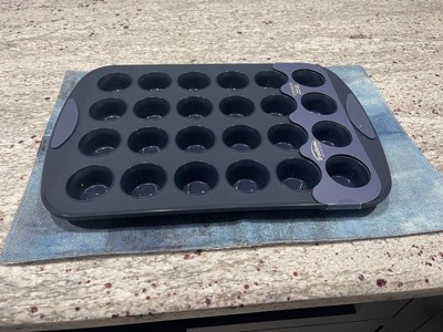 [This review was collected as part of a promotion.] I love this muffin pan! I have used a silicone mini muffin pan in the past and it was so floppy and created quite a mess. I love how this has handles and the edges are structured. It was easy to pop out the muffins and relatively easy to clean too.